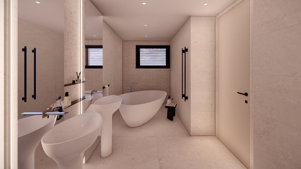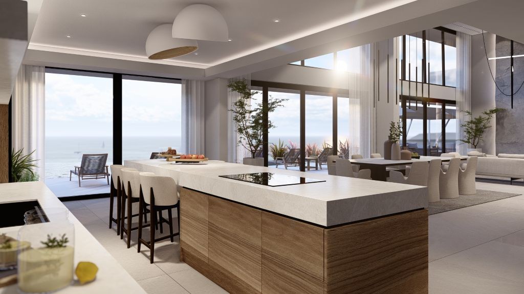 The villa’s interior combines contemporary design with expansive, light-filled spaces. A fully equipped modern kitchen is perfect for private chefs or gourmet cooking, while wellness amenities, including a sauna, fully equipped gym, and massage room, allow guests to relax and rejuvenate without leaving the property. A discreet elevator connects all floors, enhancing accessibility and convenience.