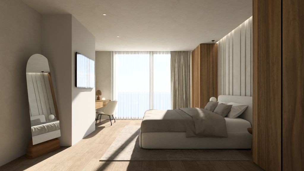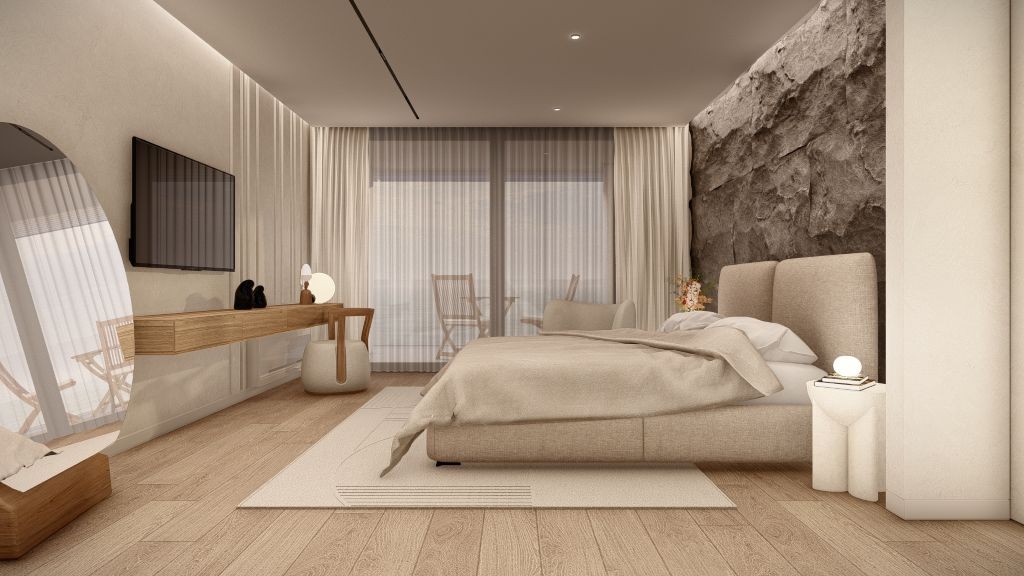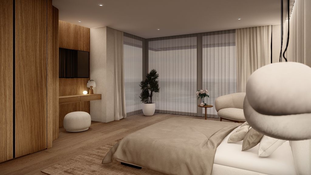 King size bed, En-suite bathroom with stand-alone shower, Television, Air conditioning, Soundproof, Blackout curtains, Safe, Terrace with a Sea view