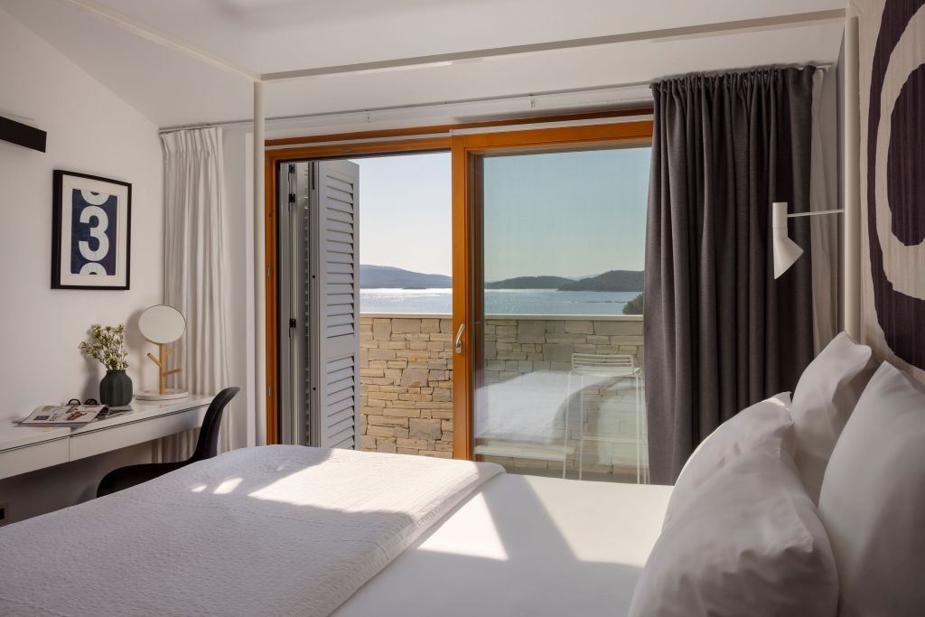 Double bed, Shared bathroom with stand-alone shower and a rain shower, Writing desk, Air-conditioning, Black out curtains, Balcony, Sea view