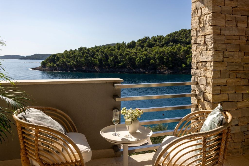 Double bed,En-suite bathroom with stand-alone shower, rain shower and bathtub, Television, Writing desk, Air-conditioning, Black out curtains, Balcony, Sea view