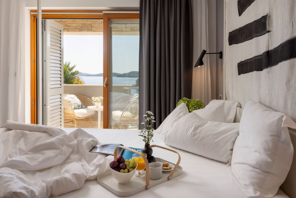 Double bed,En-suite bathroom with stand-alone shower and a rain shower, Air-conditioning, Black out curtains, Sea view