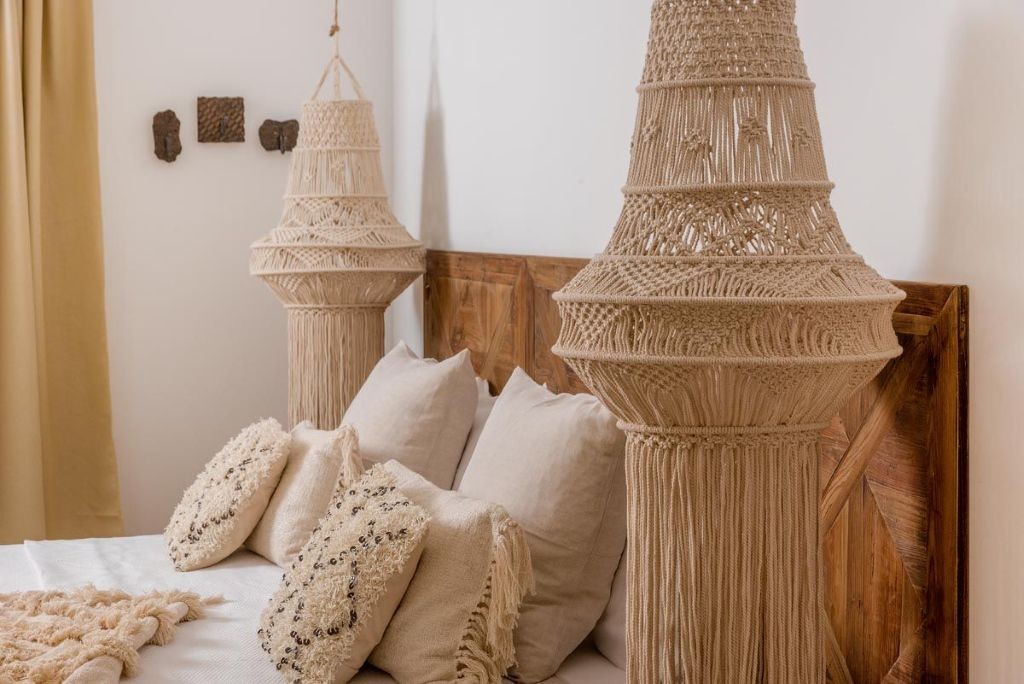 The open-plan living area features a plush linen sofa, handcrafted bamboo details and a fully equipped modern kitchen with high-end appliances, creating a space that feels both refined and inviting. Throughout the villa, carefully selected décor from around the world adds a unique character, while a Sonos system with BOSE speakers provides seamless sound for relaxing or entertaining.