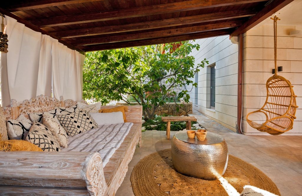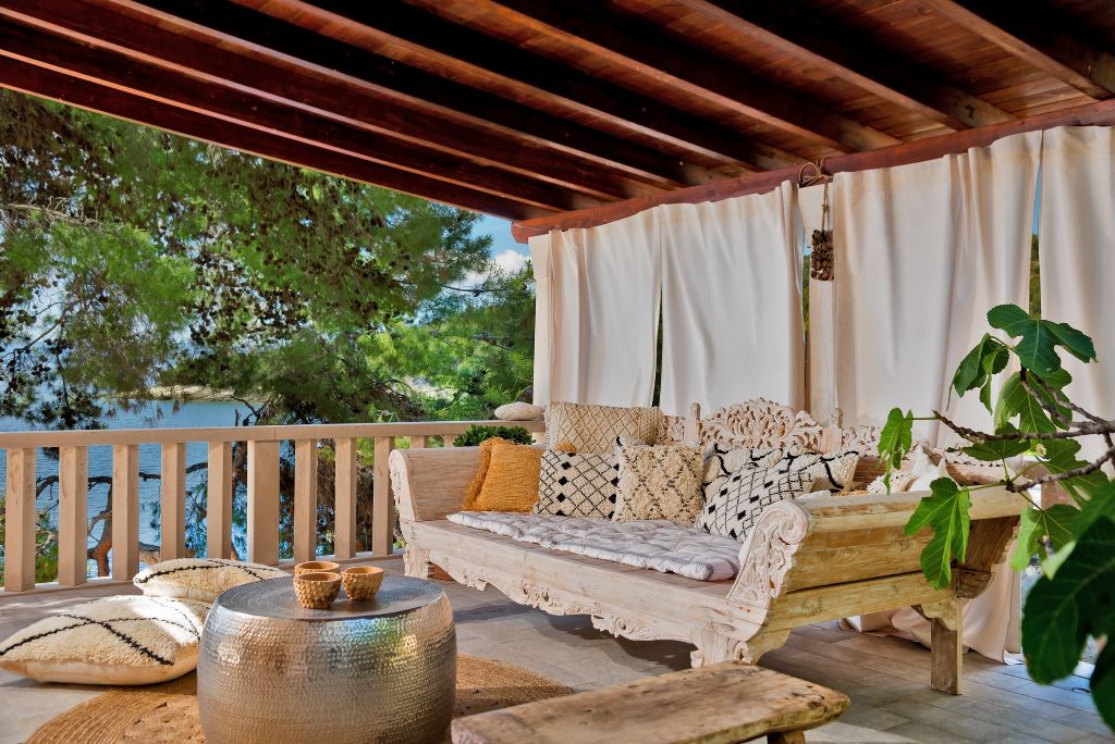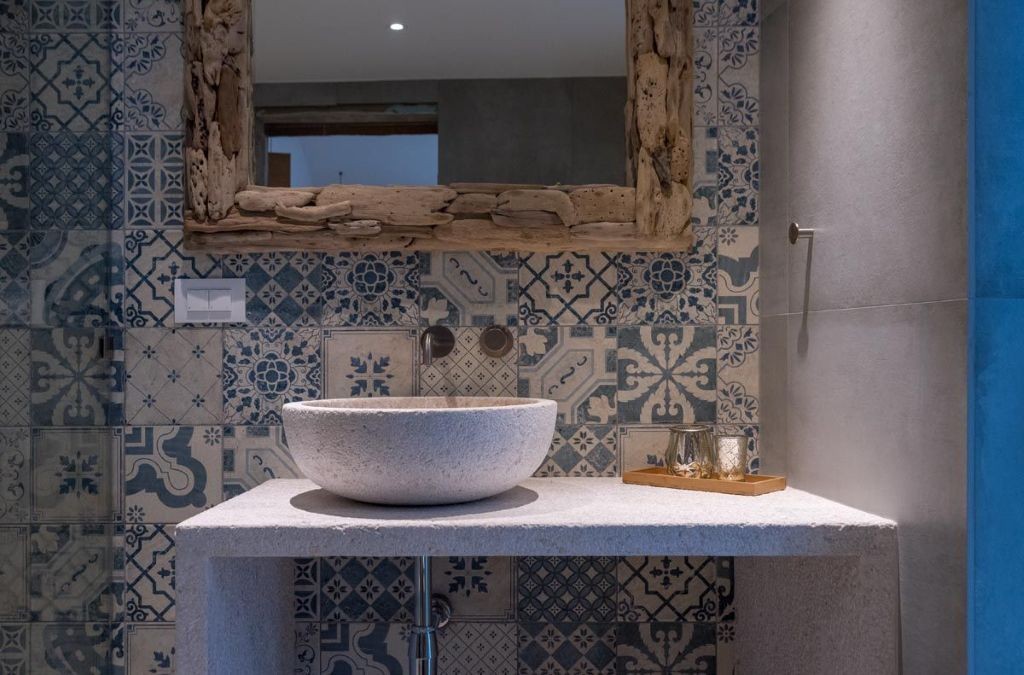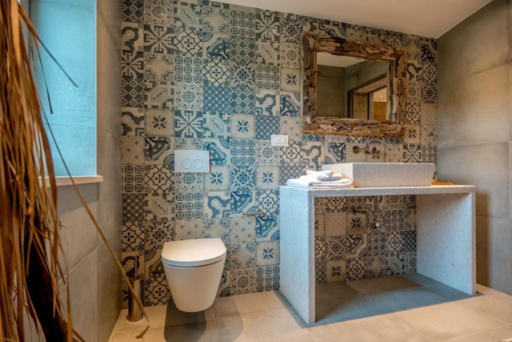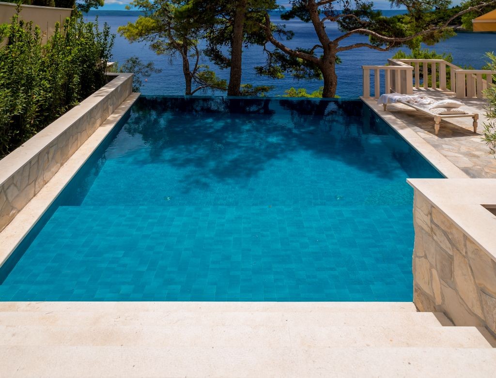 Outside, a series of landscaped terraces cascade down towards the sea, offering numerous quiet corners to unwind: from hammocks and hanging chairs to sun loungers and a shaded daybed. The 42 m² infinity pool blends beautifully with the horizon, and private steps lead to a rocky platform with direct access to the water. An outdoor dining area, barbecue and traditional pizza oven make al fresco living effortless.
