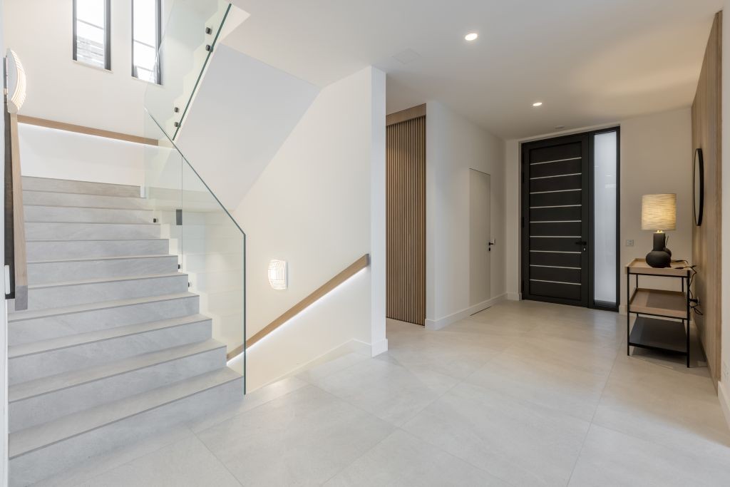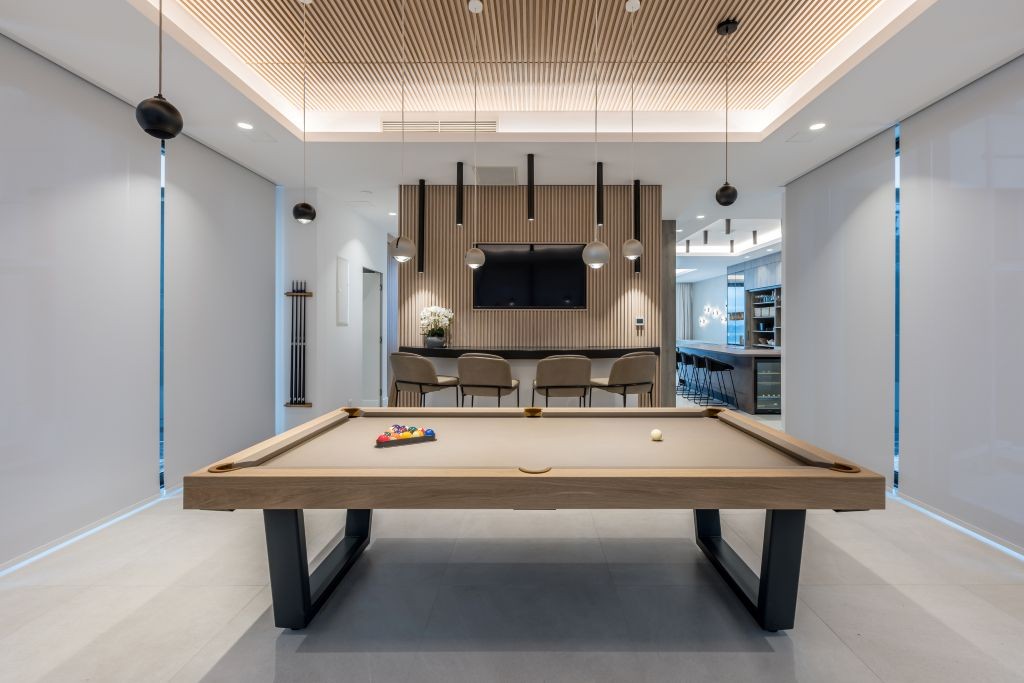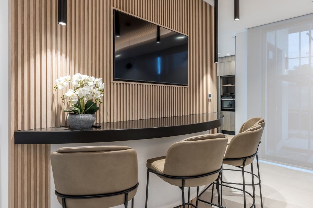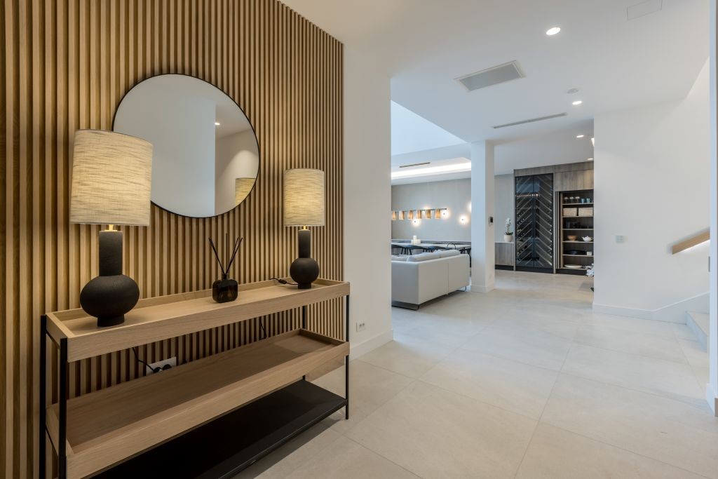 The interiors blend contemporary Mediterranean design with refined details, creating a serene atmosphere ideal for both relaxation and social gatherings.