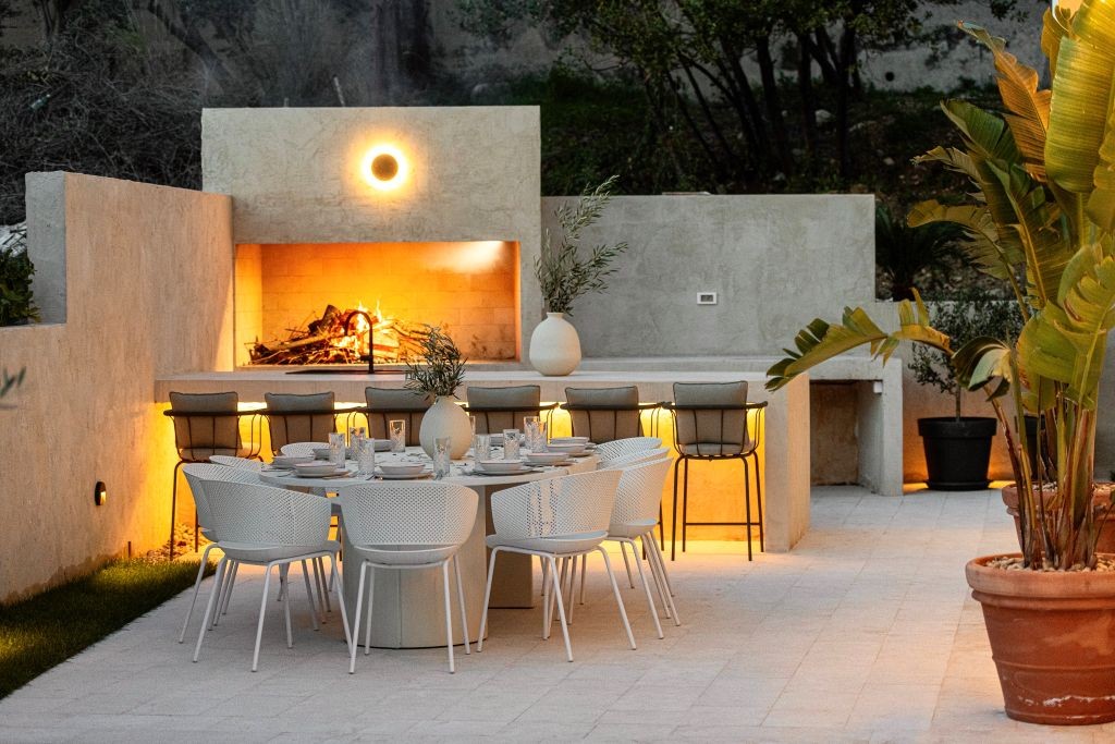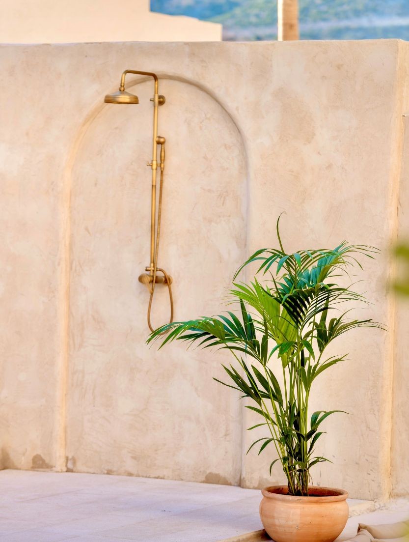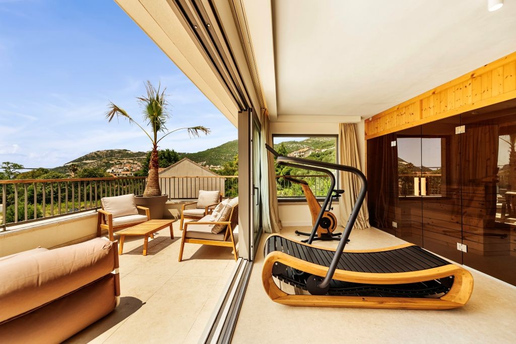 Outdoors, guests can indulge in expansive terraces with private heated pools, jacuzzis, BBQ areas, outdoor showers, and elegant garden lounges surrounded by Mediterranean greenery.