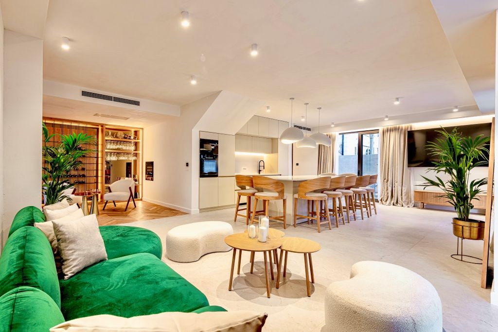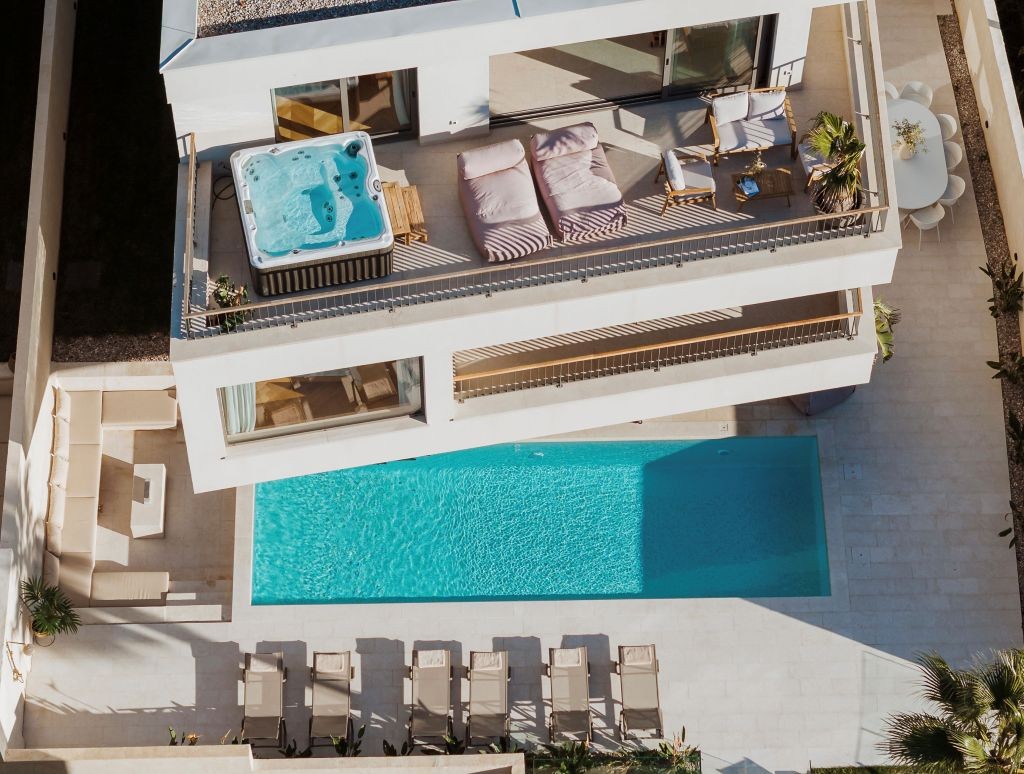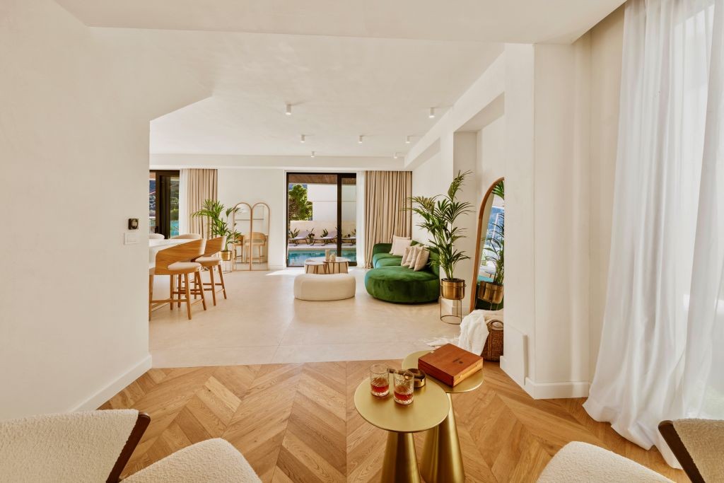 Accommodating up to ten guests, villa features five elegantly designed bedrooms and five bathrooms. Three bedrooms include queen-size beds with en-suite bathrooms, while the remaining two offer queen-size beds, each room designed for maximum comfort and privacy, with refined attention to detail.