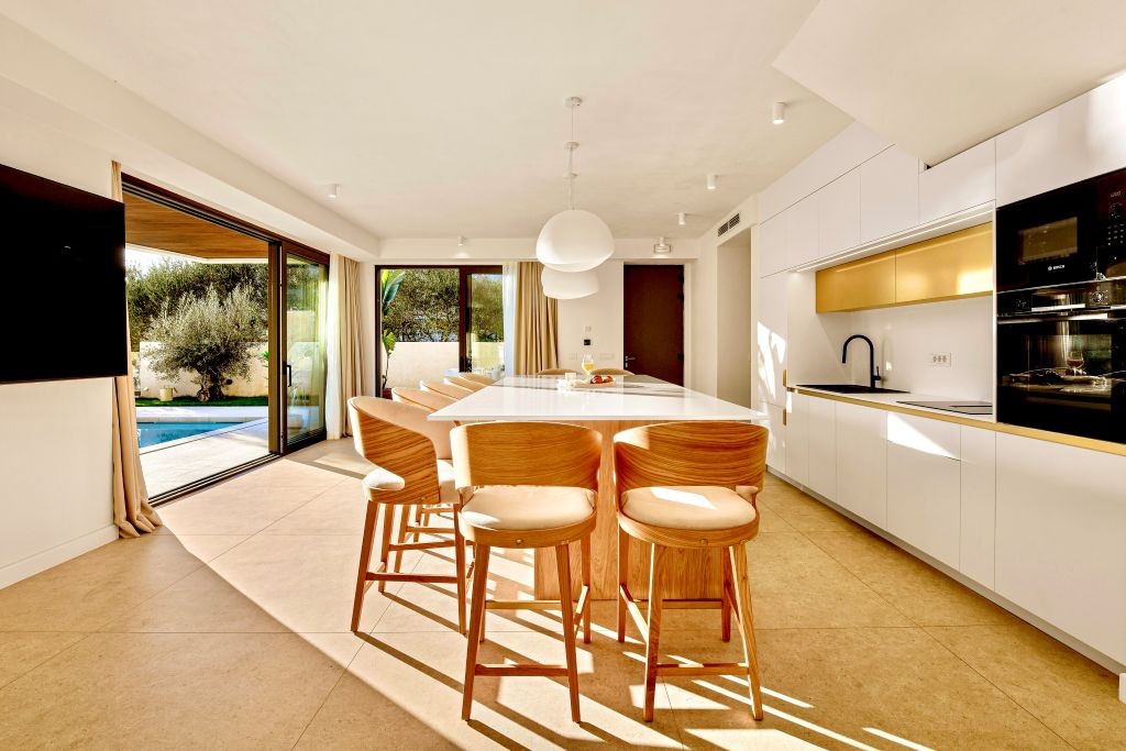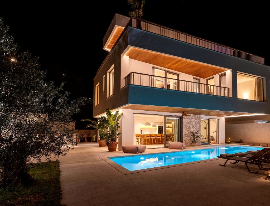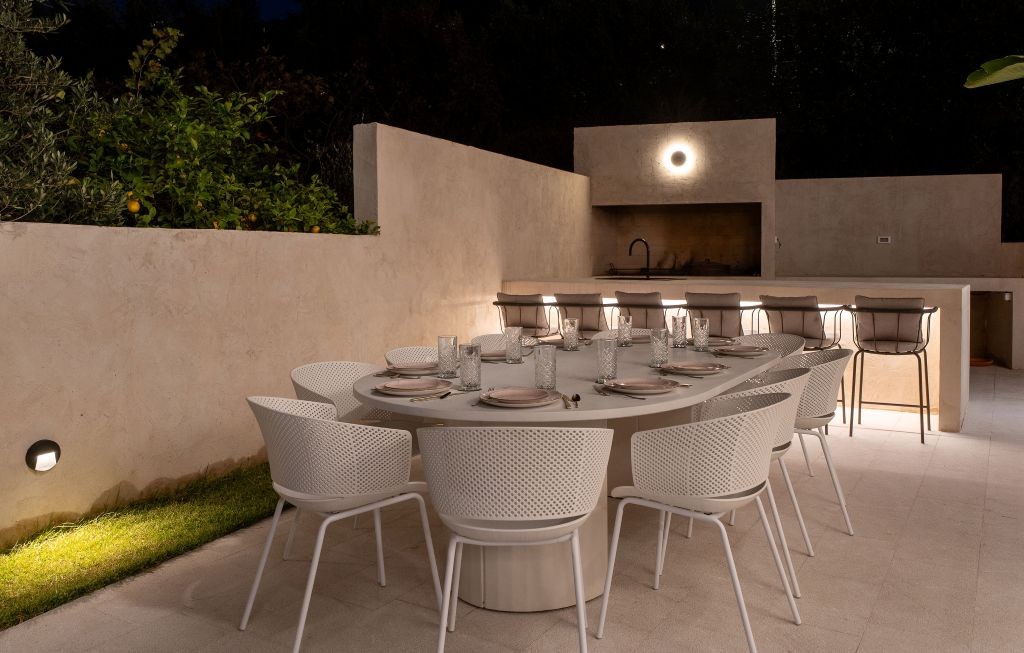 The villa accommodates up to ten guests across five beautifully appointed bedrooms and five bathrooms, offering an atmosphere of understated luxury and serenity.